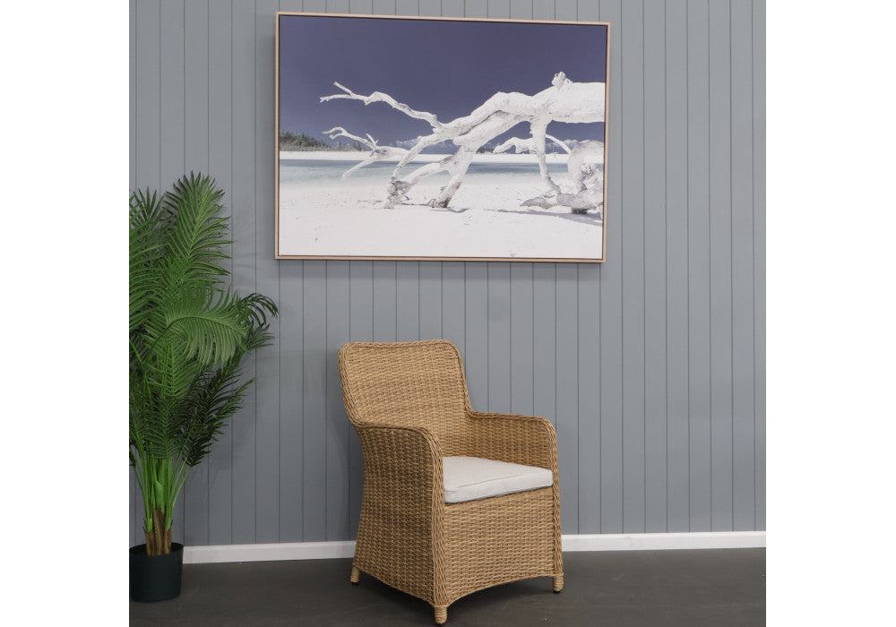 CAPELL 1800 7-PIECE OUTDOOR DINING SUITE WICKER ON ALUMINIUM FRAME TEAK LOOK/NATURAL CUSHIONS
