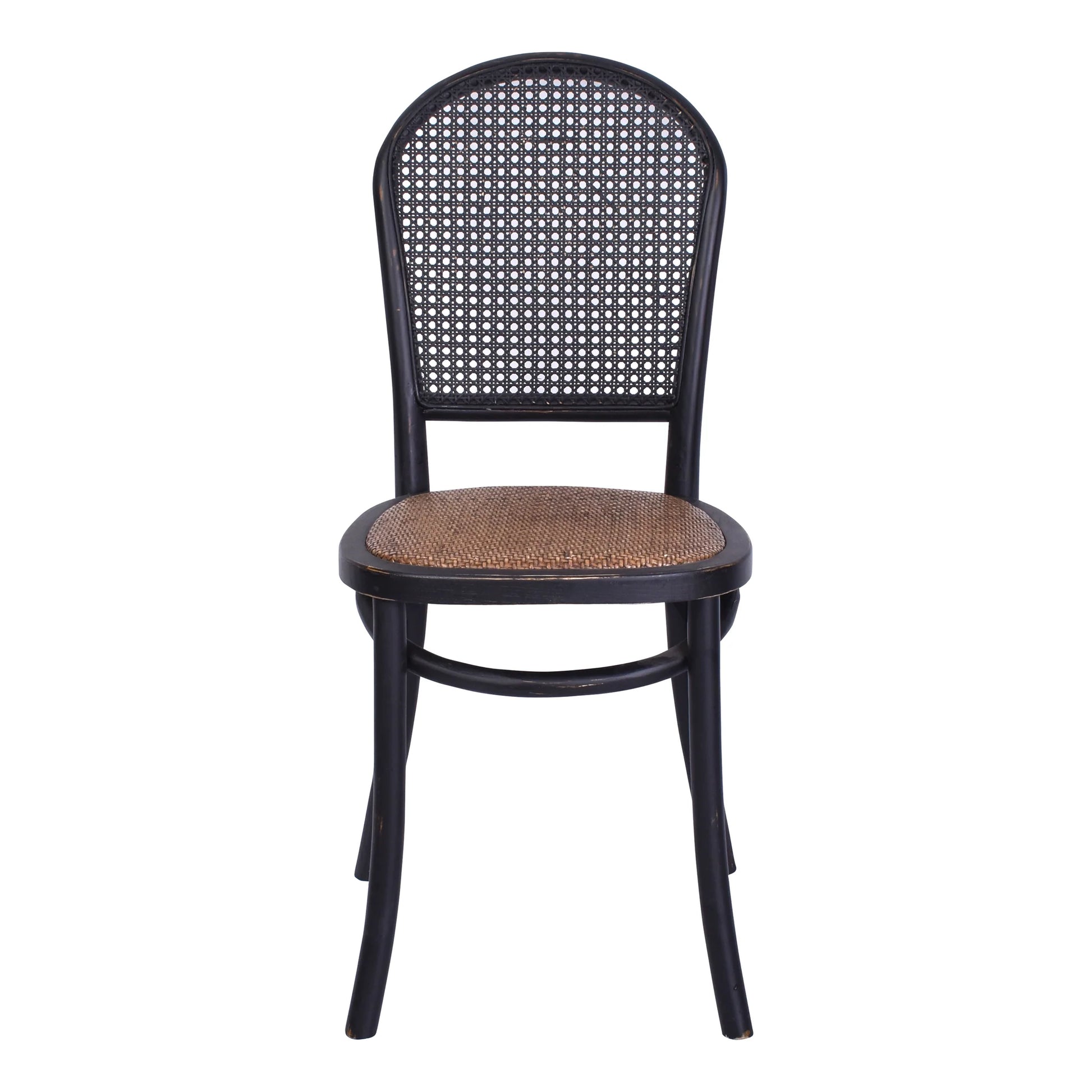 DUMAS SOLID OAK & RATTAN DINING CHAIR BLACK