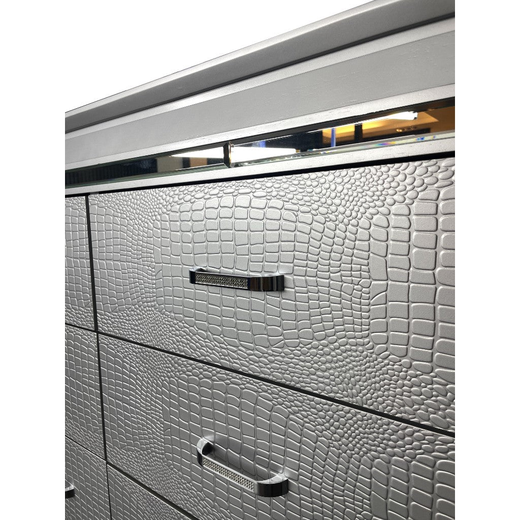 Luxurious bedroom range in a contemporary silver colour with an embossed finish and mirror accents;