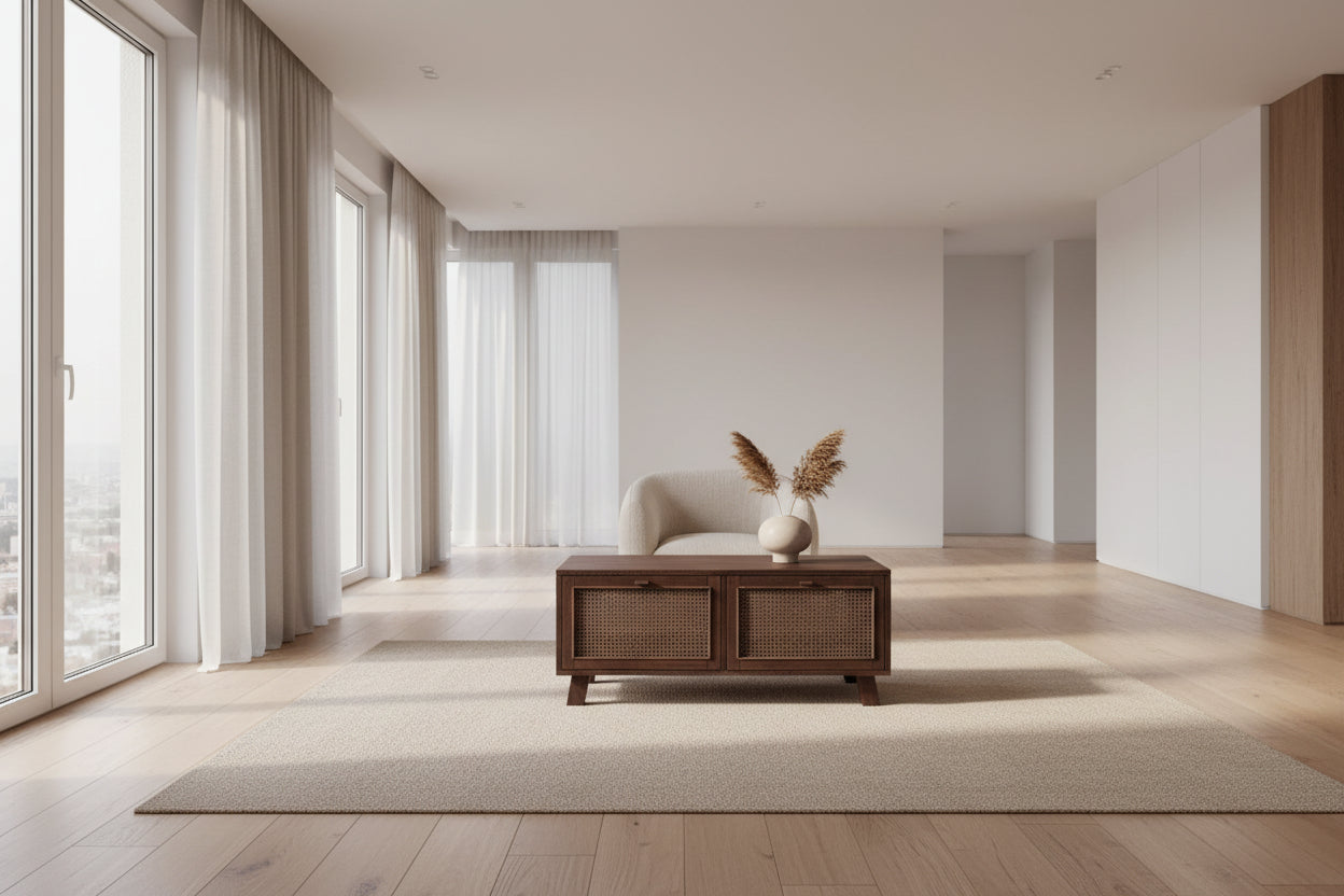 ELDRIDGE 2 DRAWERS DOUBLE FACED COFFEE TABLE IN FRUITWOOD TIMBER HONEY BROWN