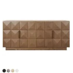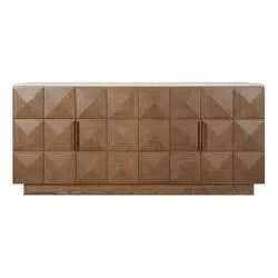 The Hampshire buffet with its River Brown marble top introduces warm sophistication, exceptional quality and remarkable versatility to any interior. The richly veined brown marble pairs beautifully with its sculptural geometric timber base, available in natural oak, walnut, white or smoked oak. Brass handles add a refined touch, while generous internal storage ensures practical functionality. Perfect for dining rooms, living spaces or impressive entryways, this buffet is admired by interior designers for its premium craftsmanship, modern texture and the way it adapts effortlessly across earthy, contemporary and boutique inspired interiors.