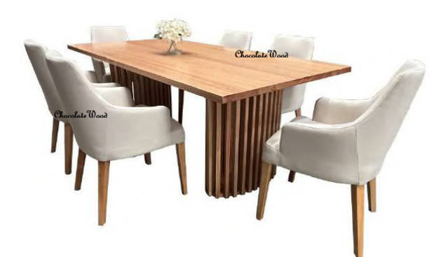 IBARRA BLUE GUM TIMBER 7 PCE DINING SET: 1 RECT. DINING TABLE & 6 DINING CHAIRS