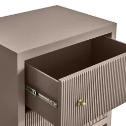 Discover the Jayla Large Bedside Table from the Jayla Bedside Table Range, now in a sophisticated taupe finish, with a small version also available in this colour, perfect for modern bedroom décor. Featuring fluted drawer fronts and brushed gold handles, this taupe nightstand adds texture and elegance, suiting contemporary or classic interiors. Its spacious design offers ample bedroom storage solutions, blending style and functionality seamlessly. Ideal for larger spaces, this taupe bedside table aligns with 2025 bedroom furniture trends, delivering minimalist, timeless aesthetics with effortless sophistication.