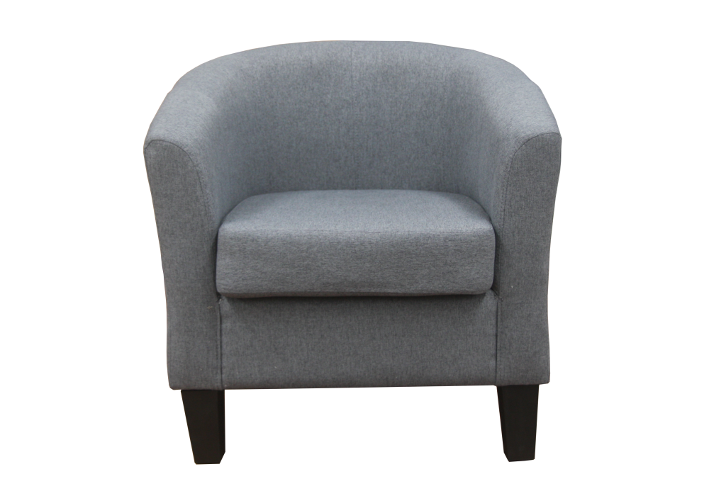 The Leopold Tub Chair has a Solid Timber frame supported by plastic legs. Its high-density foam seat cushions and soft Fabric cover give it a luxurious feel.