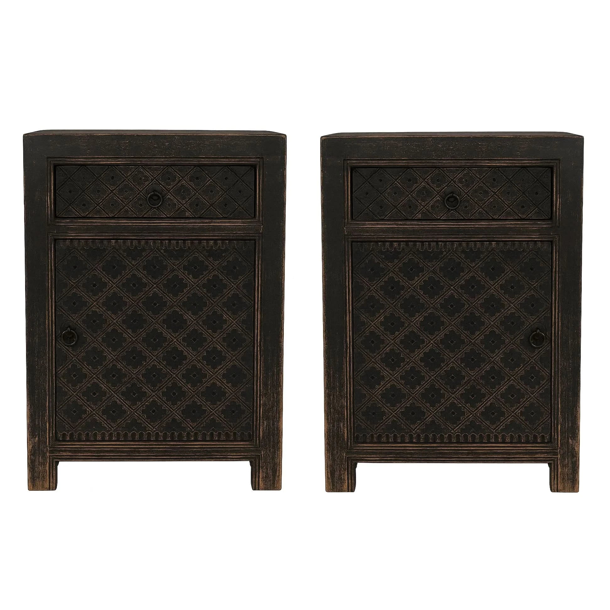 MAYLEEN PAIR OF RECLAIMED TIMBER BEDSIDE TABLES 1 DRAWER 1 DOOR BLACK