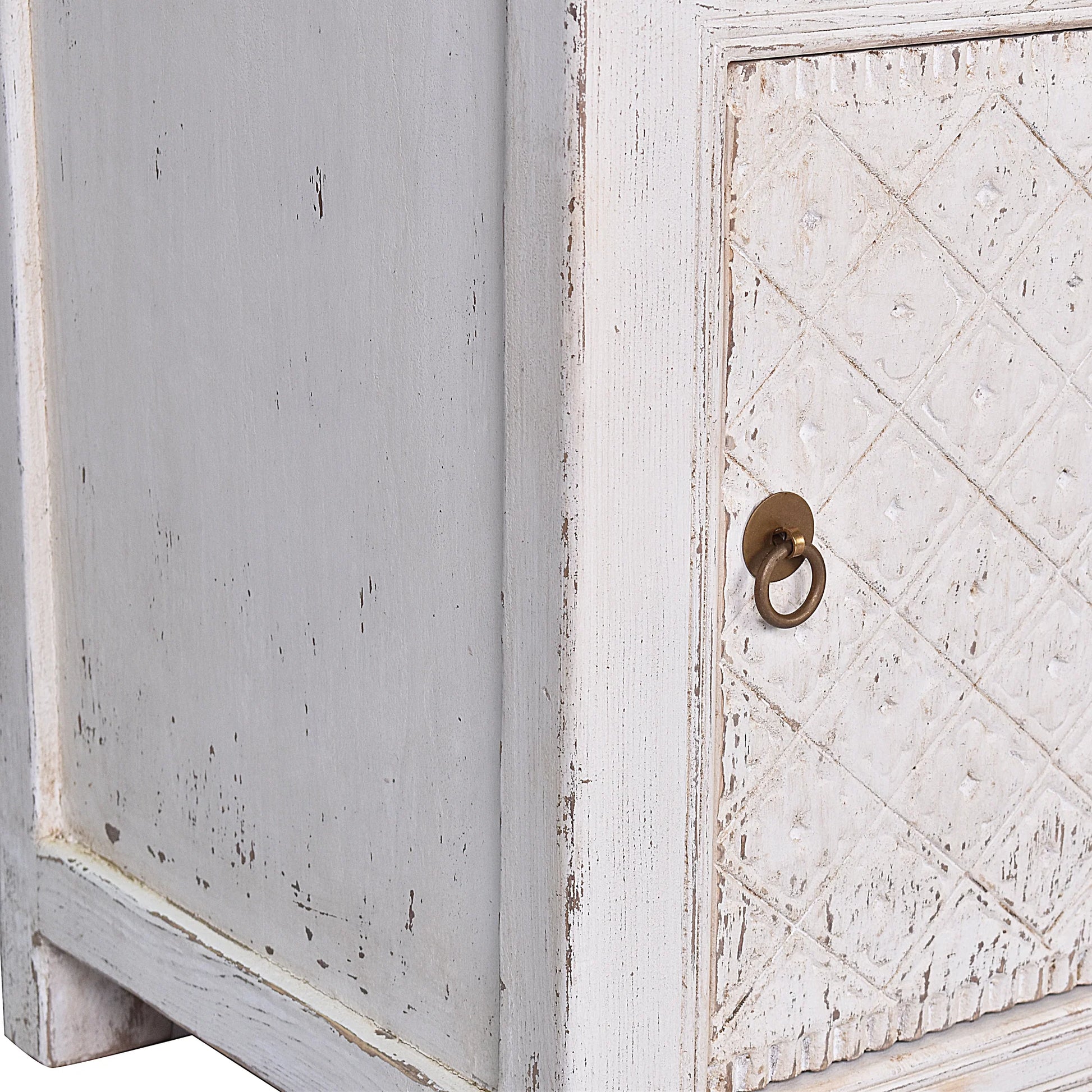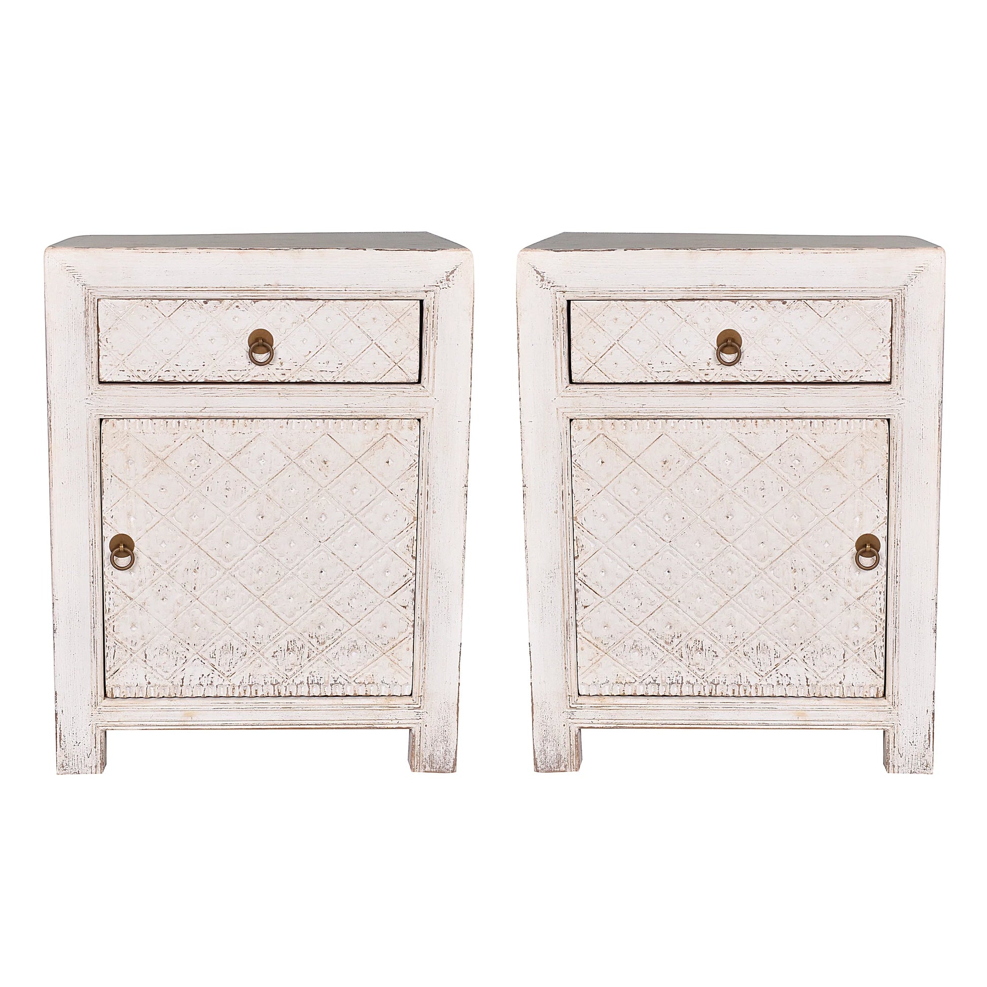 MAYLEEN PAIR OF RECLAIMED TIMBER BEDSIDE TABLES 1 DRAWER 1 DOOR WHITE