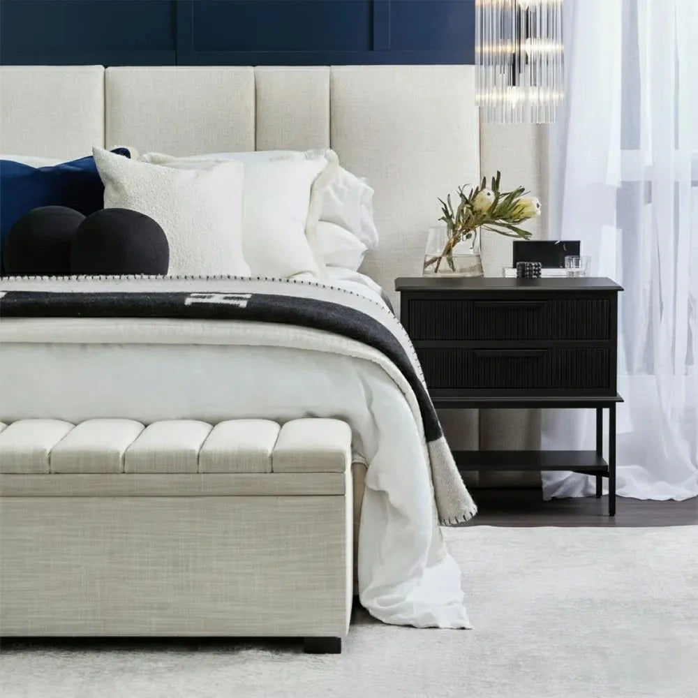 Bold in form yet refined in detail, the Moretti Bedside Table - Large offers a striking balance of elegance and functionality. Fluted drawer fronts, streamlined handles, and a spacious open shelf deliver practical storage with sculptural appeal. Its fully colour-matched finish available in All Black or All White creates a cohesive, monochrome aesthetic that complements a wide range of contemporary interiors. A versatile piece designed to bring understated sophistication to modern bedrooms.