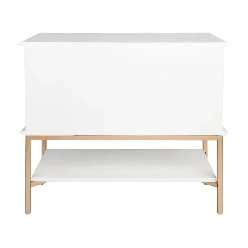 MORETTI 2-DRAWER BEDSIDE TABLE SATIN WHITE/GOLD LARGE