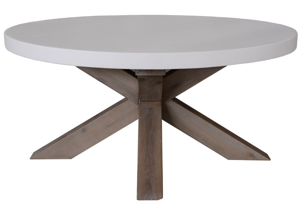 ROSALI 2-TONE WHITE CONCRETE TOP & SOLID ACACIA PEWTER ROUND COFFEE TABLE
