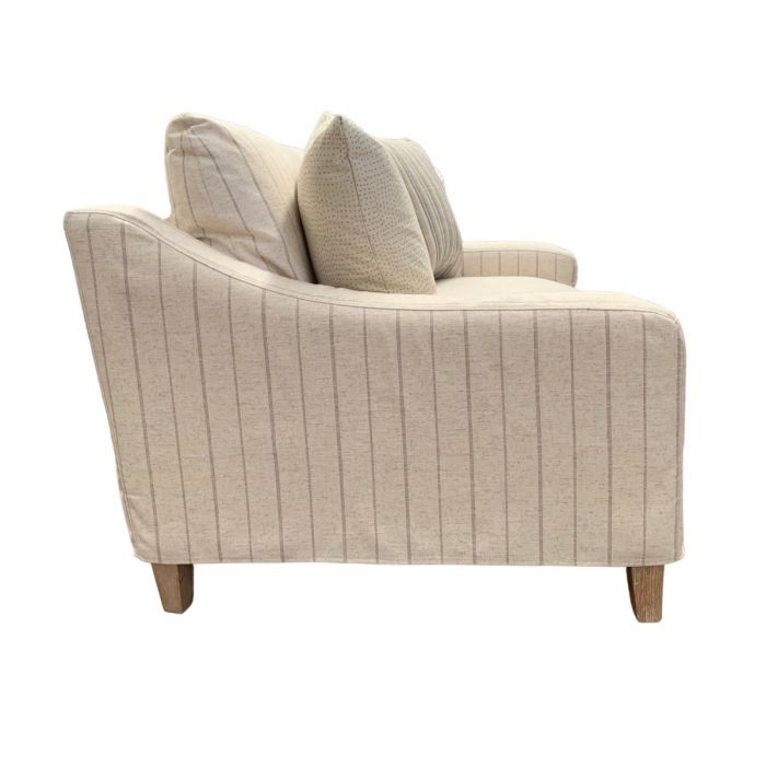 SERVINI FABRIC 1.5 SEATER LOUNGE SOFA CALANTINO STRIPE WITH CONTRASTING THROWS