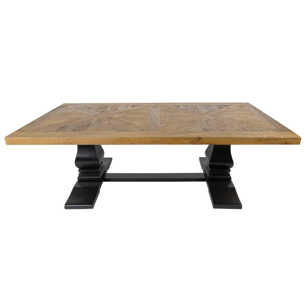 SORANZO MANGO WOOD COFFEE TABLE HANDCRAFTED PARQUET TOP OAK/BLACK 140CM FRENCH PROVINCIAL