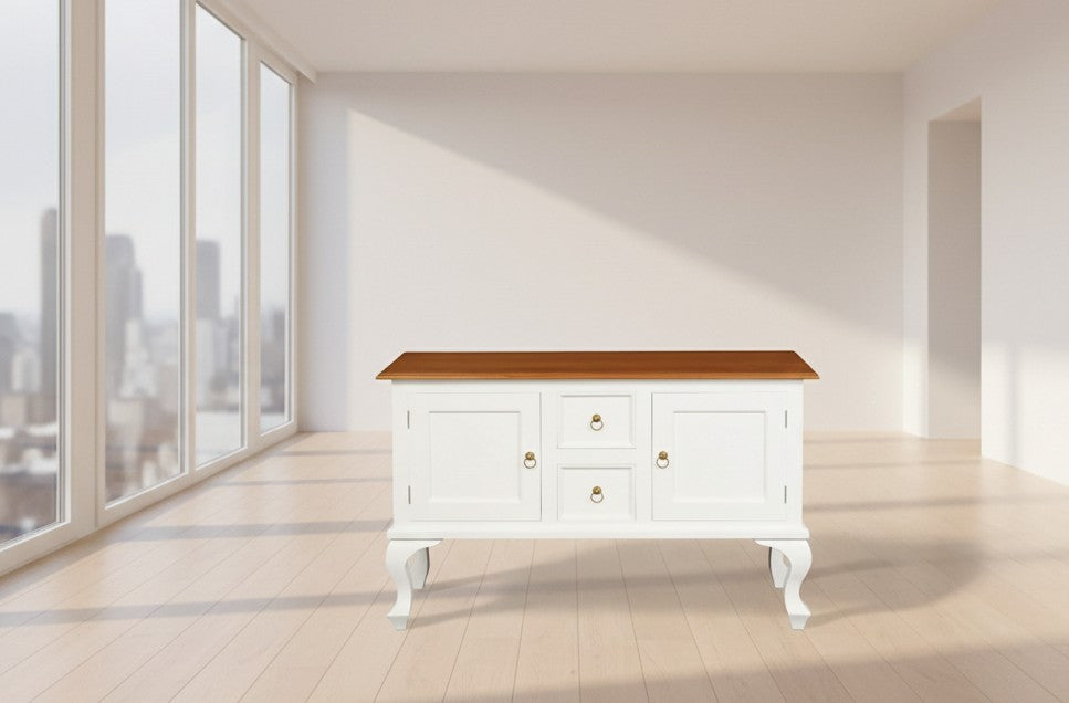 STEWART QUEEN ANN STYLE SOLID MAHOGANY 2 DOORS 2 DRAWERS SOFA TABLE IN WHITE/CARAMEL130CM