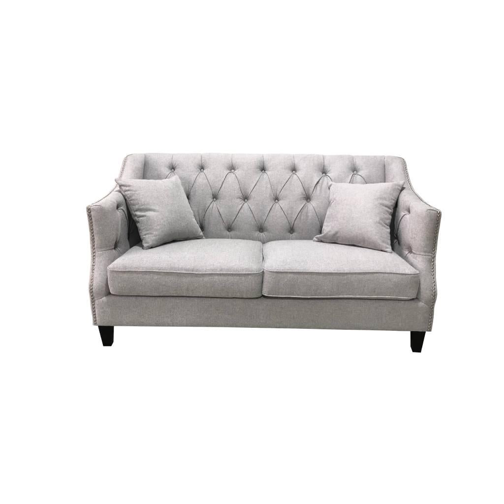 VENIER 3 SEATER FABRIC QUILTED & STUDDED SOFA LATTE